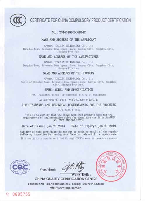 AV和AVR的3C證書(英文)