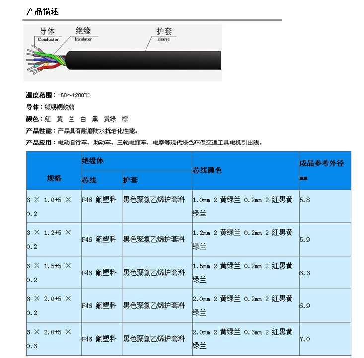 電動(dòng)車用鐵氟龍八芯線